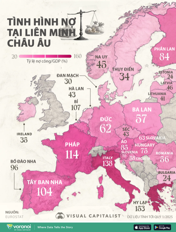 Tình hình nợ của các nước EU (08/10/2025)