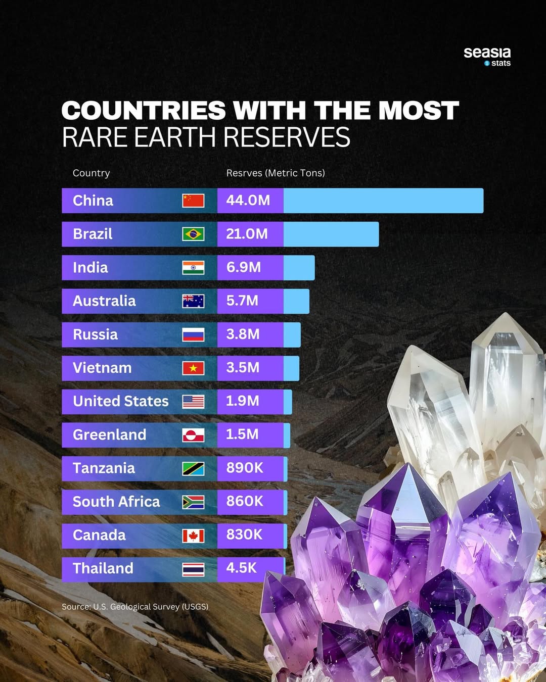 Vietnam possesses significant rare earth potential, ranking second or third globally.