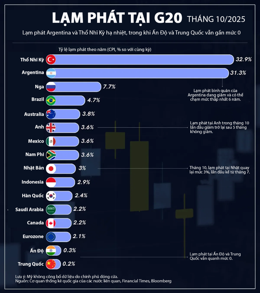 Lạm phát tại các nền kinh tế G20, Ấn Độ và Trung Quốc duy trì gần 0% (17/12/2025)