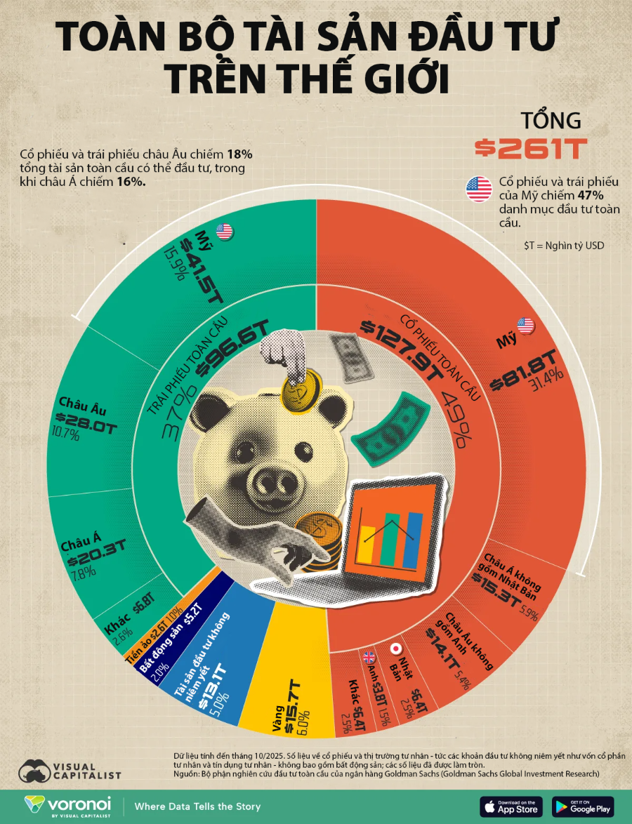 Quy mô tài sản đầu tư trên toàn cầu qua một biểu đồ (23/12/2025)